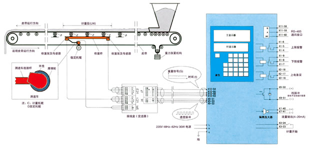 | 1:承重架 2:稱重橋 3:托輥架及托輥 4:測速機構及測速傳感器 5:荷重傳感器 6:皮帶輸送機并配有JL500B稱重控制儀表 | |||||||||||||||||||||||||||||||||||||||||||||||||||||||||||||||||||